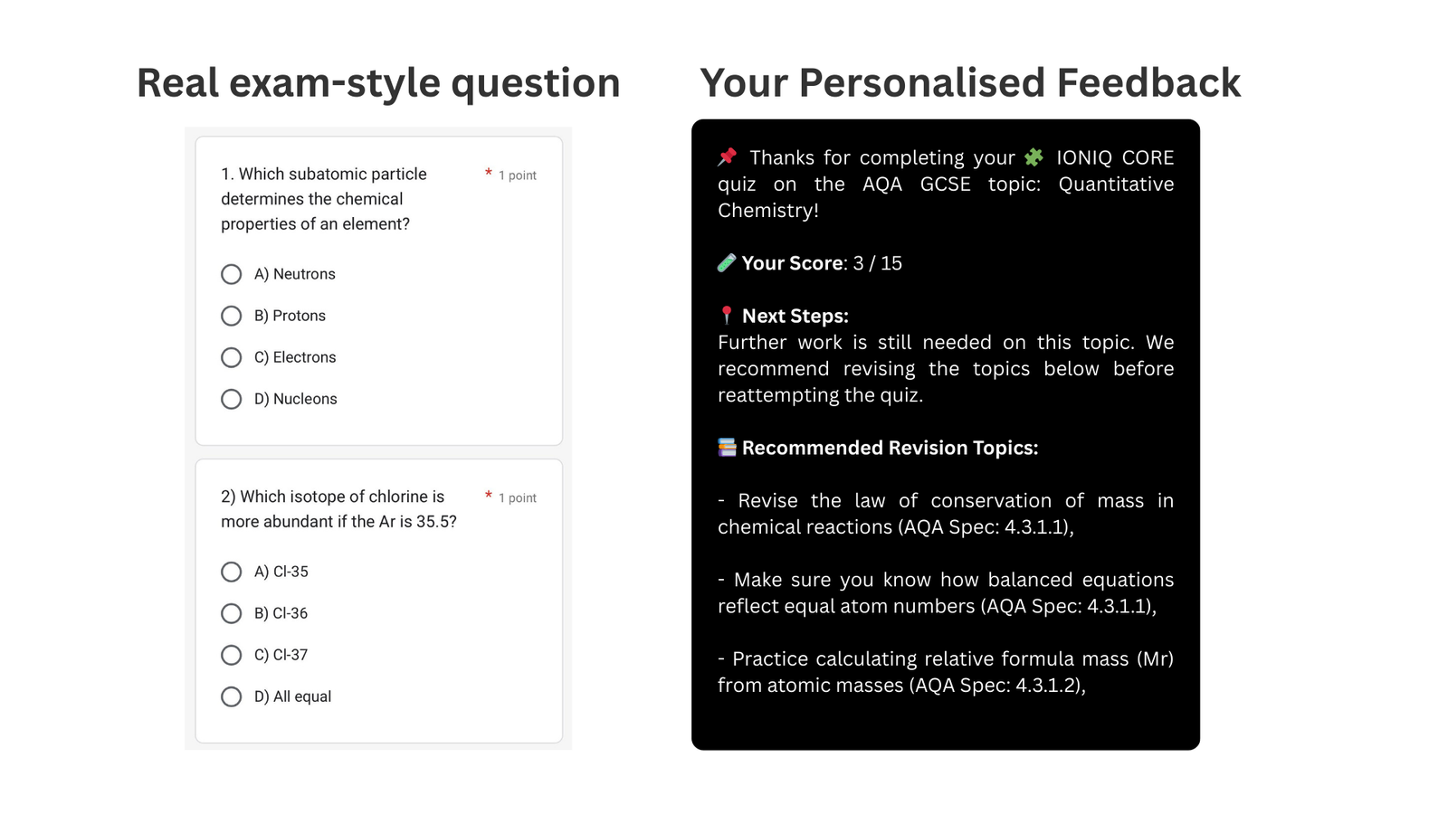 IONIQ Learning finds your child’s weaknesses in GCSE/iGCSE Science, gives targeted steps, and helps them boost grades with confidence
